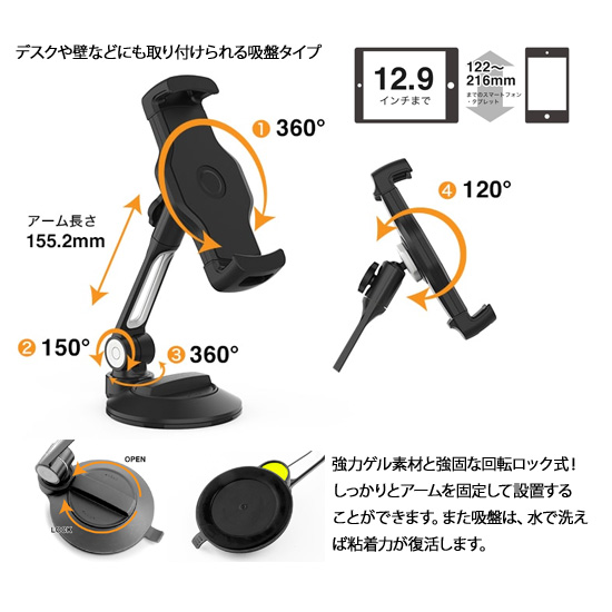 スマホ、タブレット用スタンド【吸盤型】
