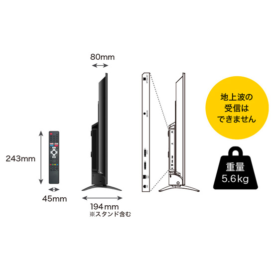 テレビ【42型 アンドロイド搭載 チューナーレス】